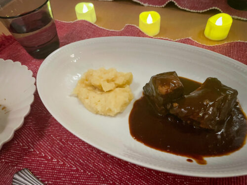 パンは室温で30分、マッシュポテトはレンジ解凍、ビーフシチューとスープは湯せんですが、シチューはメインなので、前菜を食べている間に温めればOKなので、事前準備の手間はそんなにかかりませんでした😆